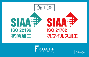 機能性触媒コーティング・COAT-F(コートエフ)は高い安全性基準をクリアした確かな抗菌加工・抗ウイルス加工製品のみに認められるSIAAマークを取得済。